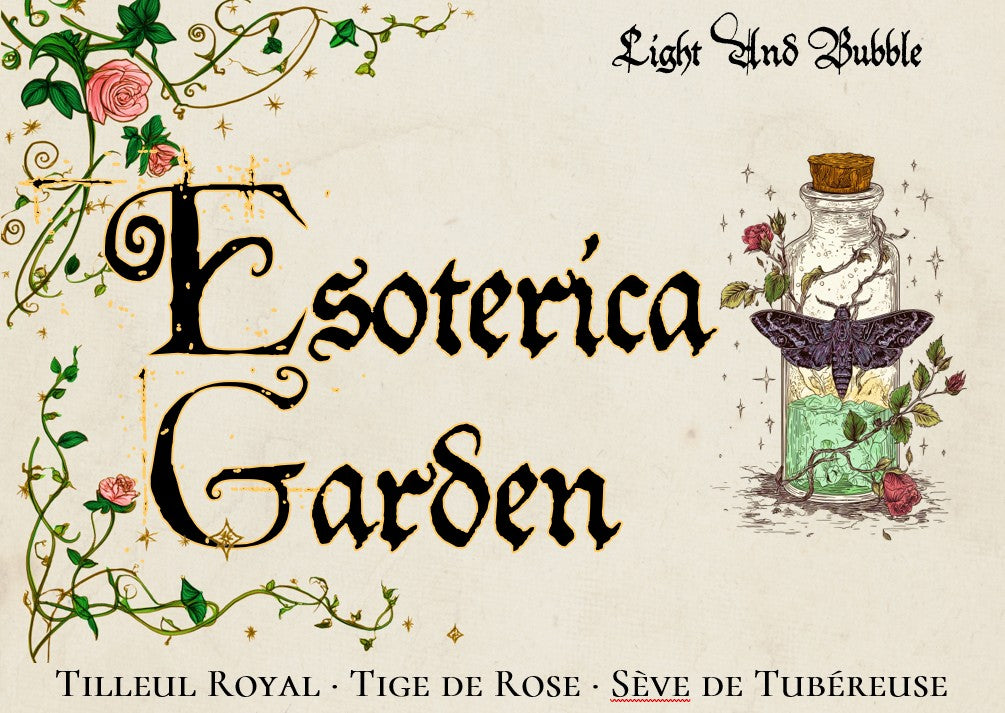 Esoterica Garden verströmt die mystische Frische eines heiligen Gartens. Dieser kristallklare Duft aus Königslinde , frisch geschnittenen Rosenstängeln und mondbeschienenem Tuberosensaft entfaltet einen botanischen Zauber, der die Wiedergeburt einleitet.